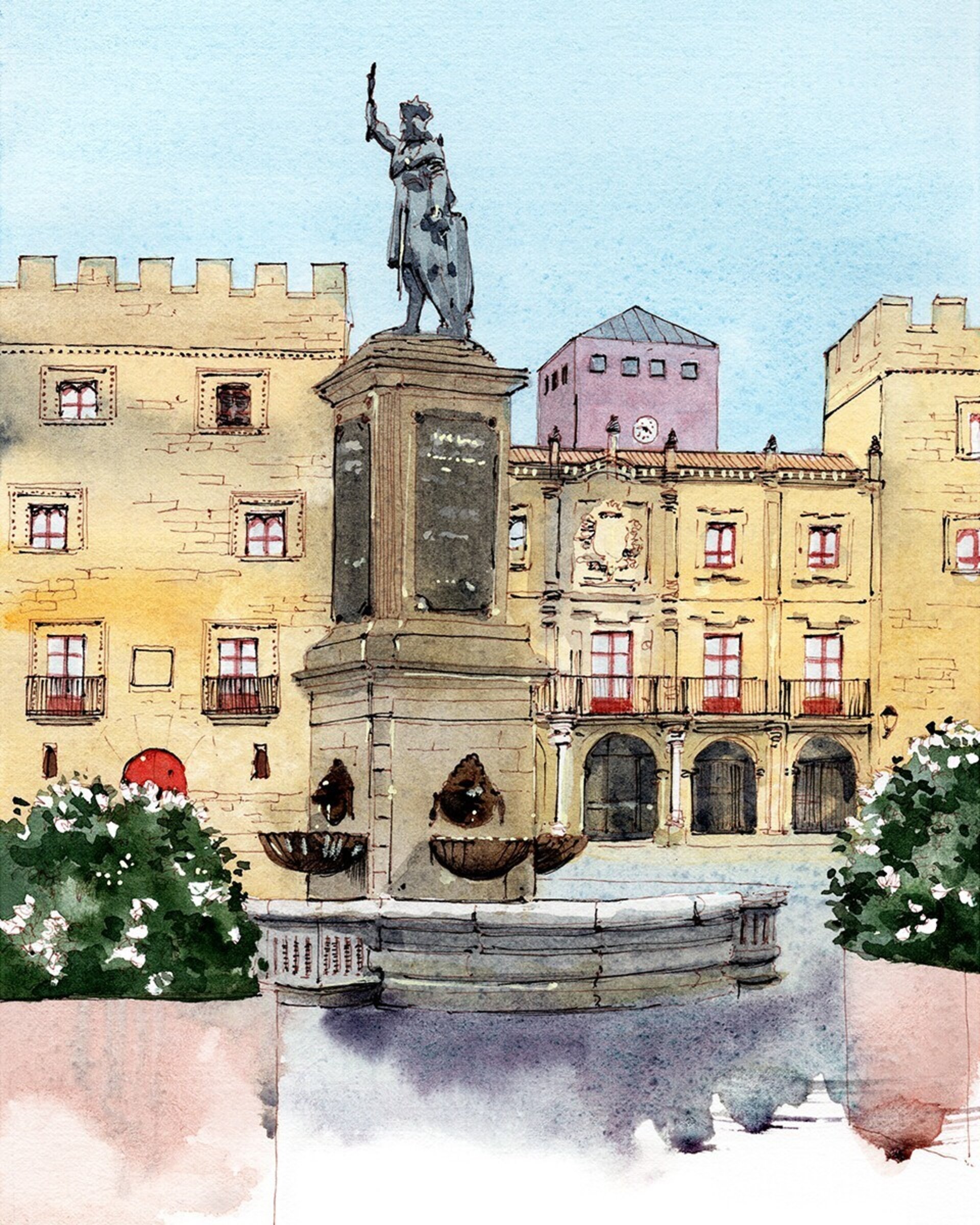 Escultura de Pelayo frente al Palacio de Revillagigedo Gijón